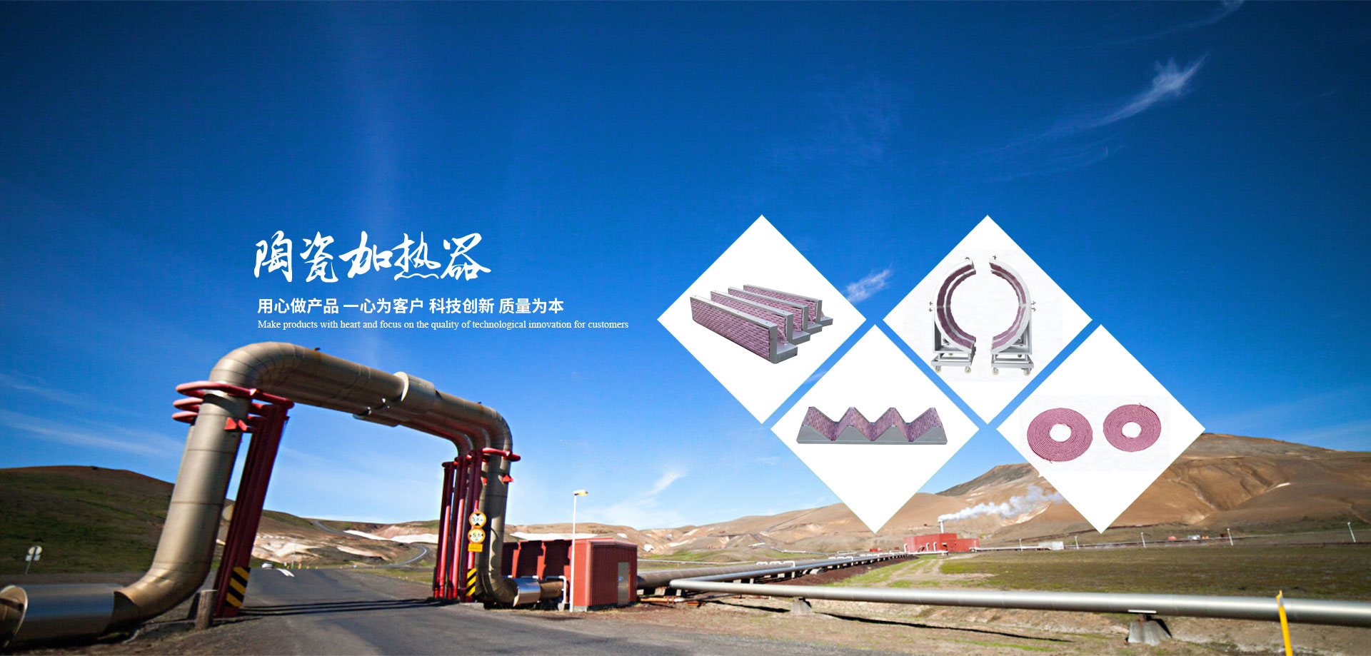 目前主要的产品为:陶瓷加热器,履带式加热器,热处理温控设备,绳型加热器,焊剂回收机,热处理辅助材料等电热设备